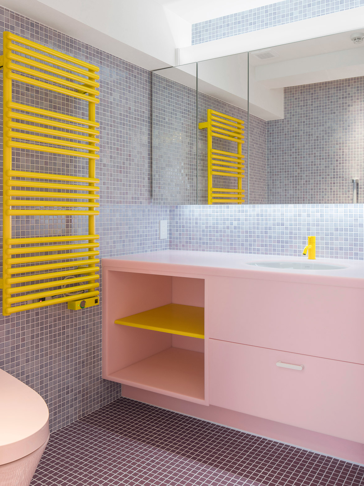 Designer Adam Nathaniel Furman has taken Instagram – aka the world – by storm with his vivacious use of colour, pattern, and materials. This bathroom for an apartment right in the heart of Tokyo’s government central, Nagatacho, is certainly no exception. The epitome of a bathroom designed to become one of the most iconic bathrooms of Instagram, Adam Nathaniel Furman’s bathroom for Nagatacho Apartment is a hyper-aestheticized celebration of the senses, and of every day domestic life.