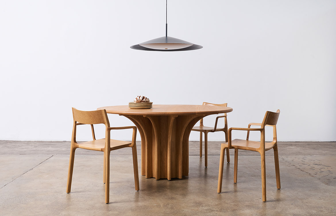 Named after its distinctive scale and slimline silhouette, Broad is a classic yet contemporary pendant that creates intimacy in even the largest of spaces. Offering a soft diffusion of light with an ambient, even glow, Broad was designed to be placed above the centre of a table – from dining to meeting. Striking enough to command attention yet streamlined enough to fit in within any space, Broad does more than just illuminate; it centres conversations, focus and atmosphere. With a single stem-like hanging point, Broad is available with either a 500mm or 800mm width diameter.